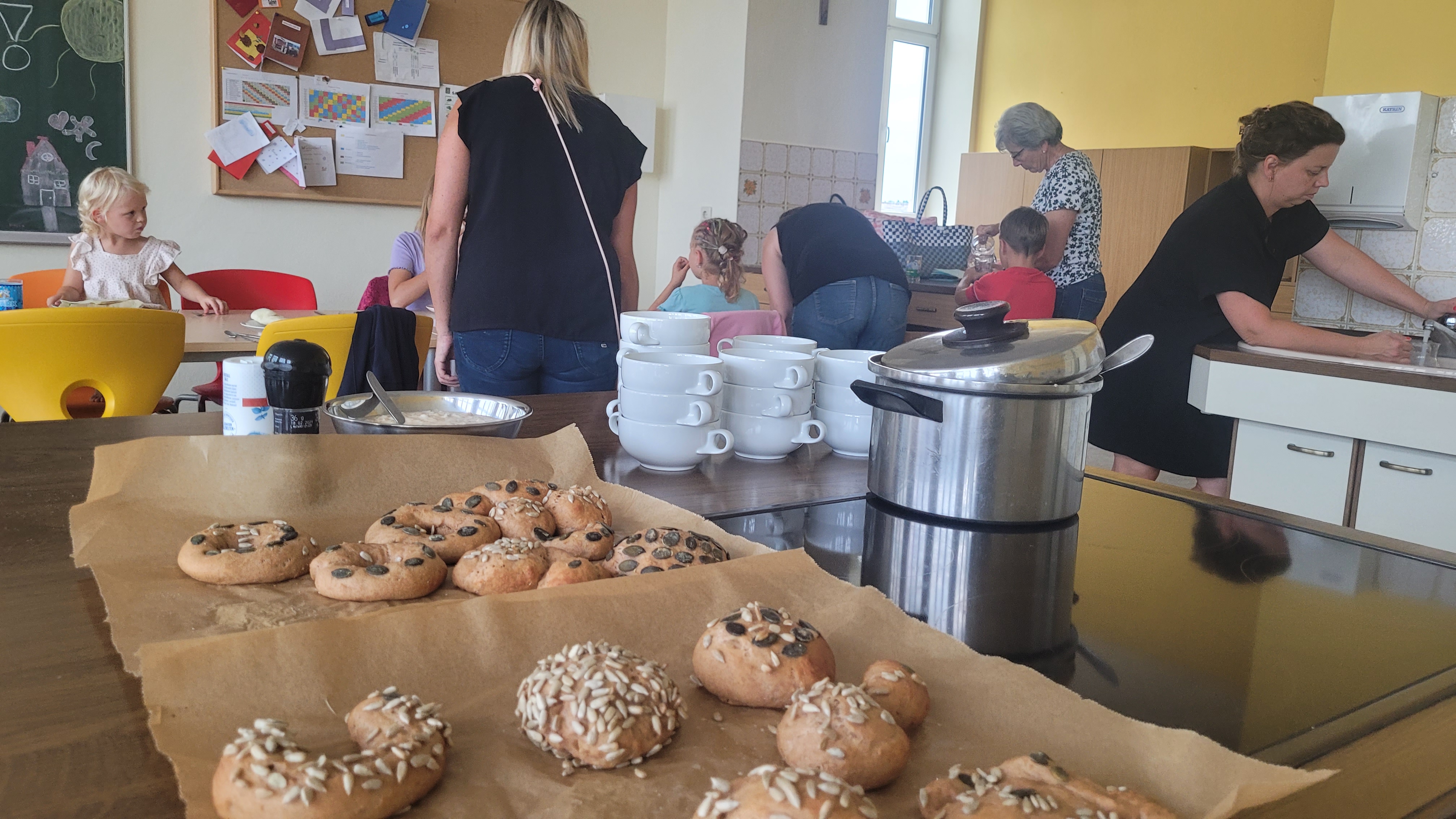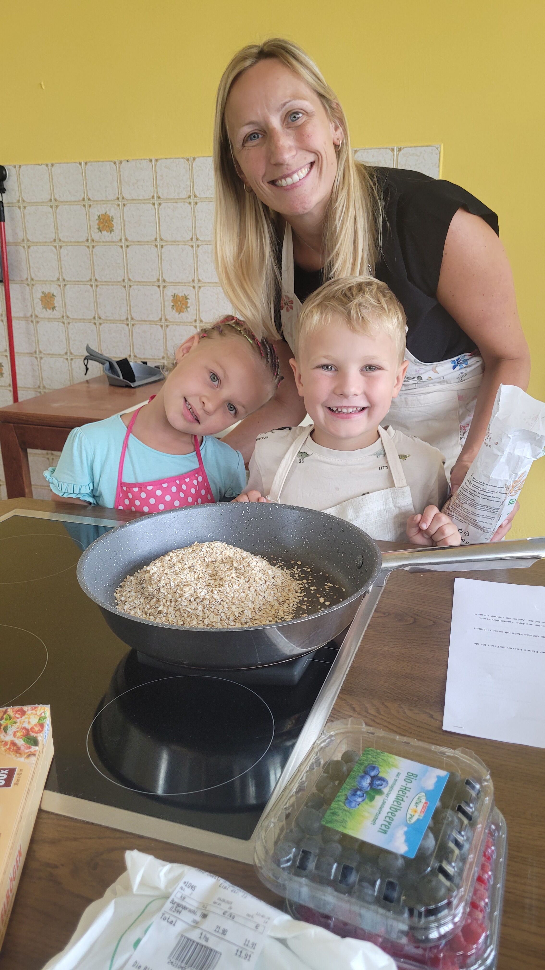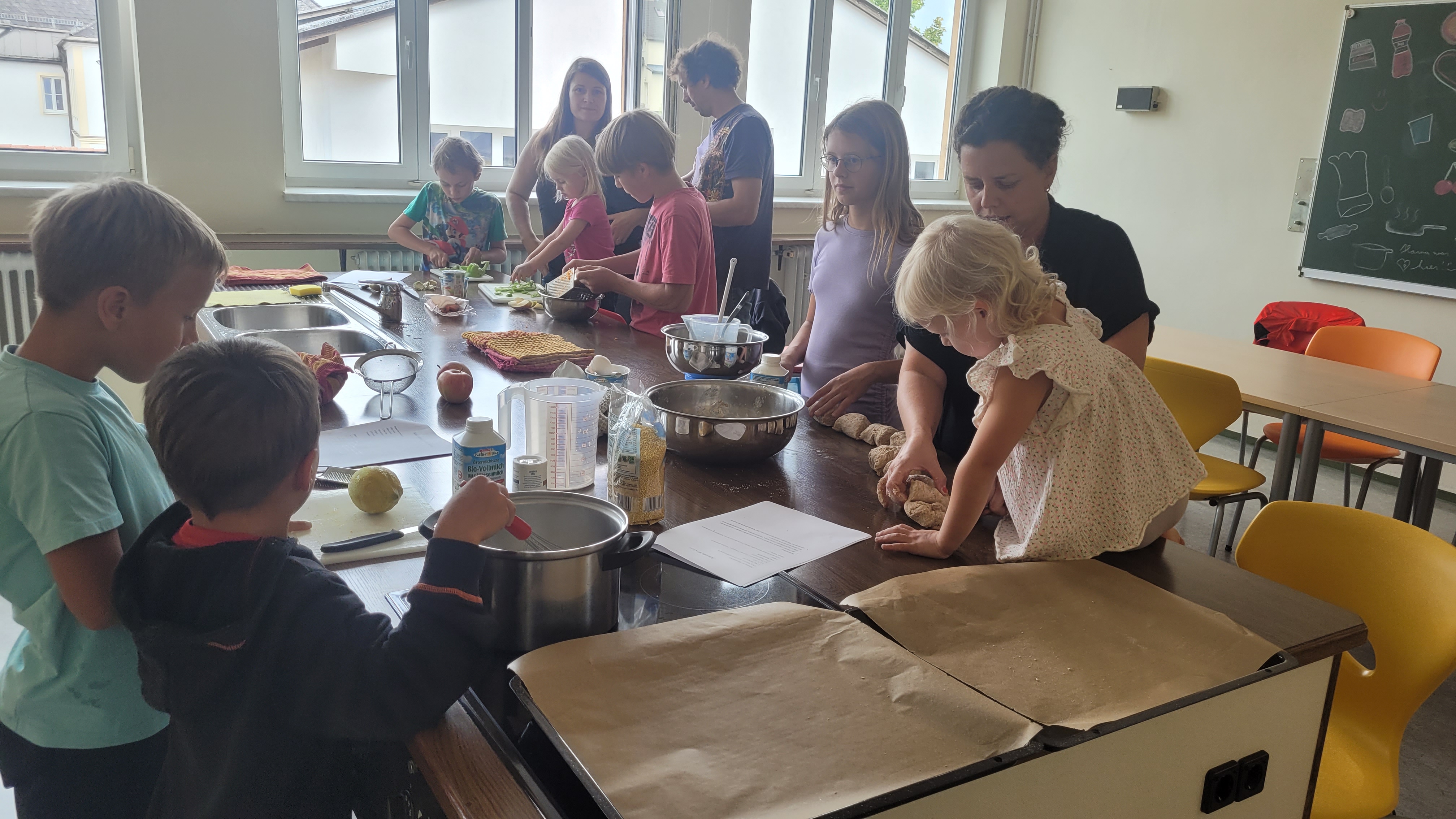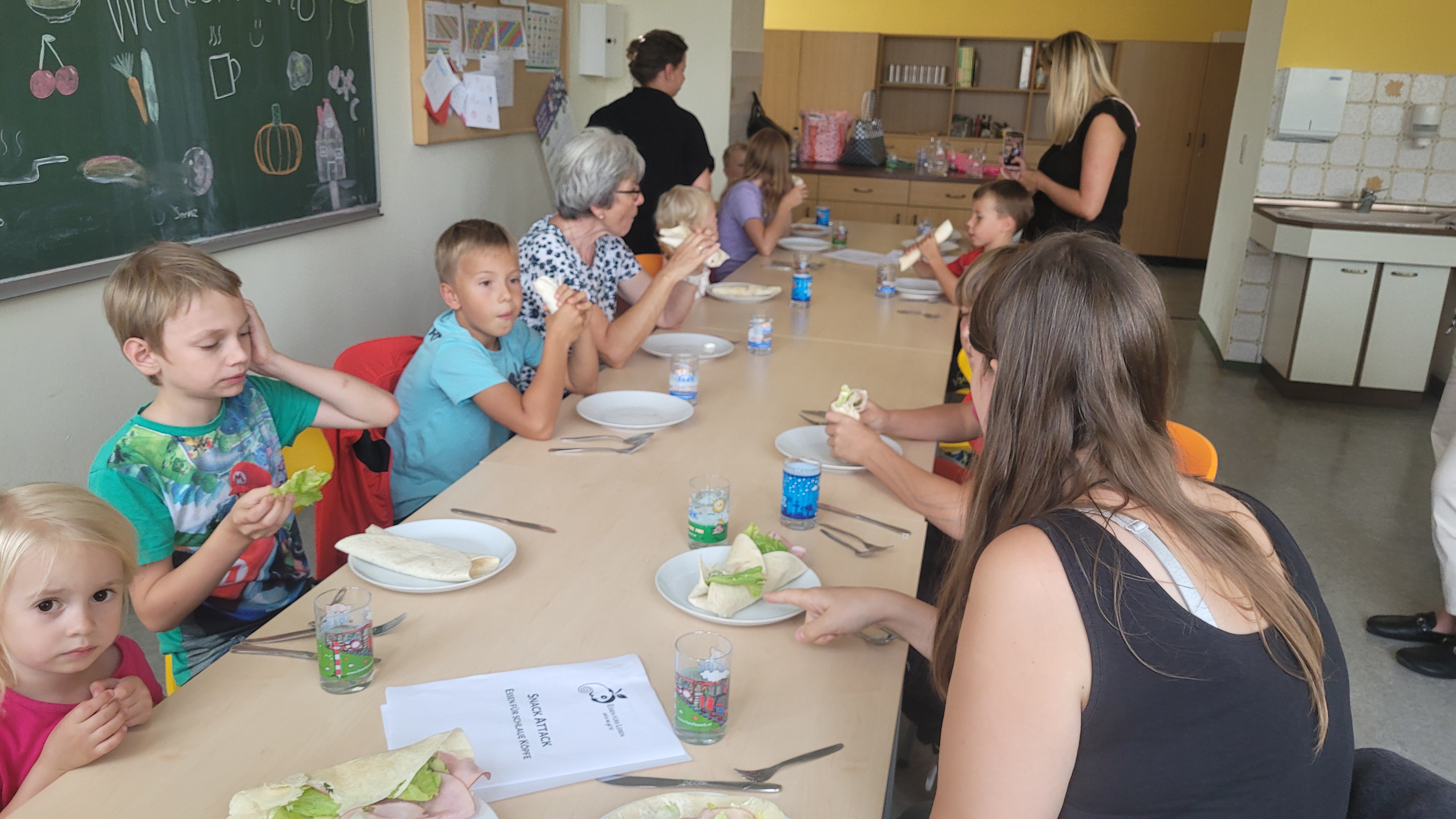 Beim Eltern-Kind-Kochworkshop mit Diätologin Isabella Kramer, BSc, drehte sich alles um Brainfood für den (Schul-)Alltag. Gemeinsam wurde geschnippelt, gerührt und gekostet – von schnellen Weckerl mit Rohkostaufstrich über Jausen-Wraps bis hin zu süßer Krafthirse und Müsliriegeln. Neben wertvollen Tipps für eine ausgewogene und klimafitte Jause stand vor allem der Spaß am gemeinsamen Kochen im Vordergrund. Zum Abschluss haben sich alle Teilnehmerinnen und Teilnehmer ihre gesunden Snacks schmecken lassen.