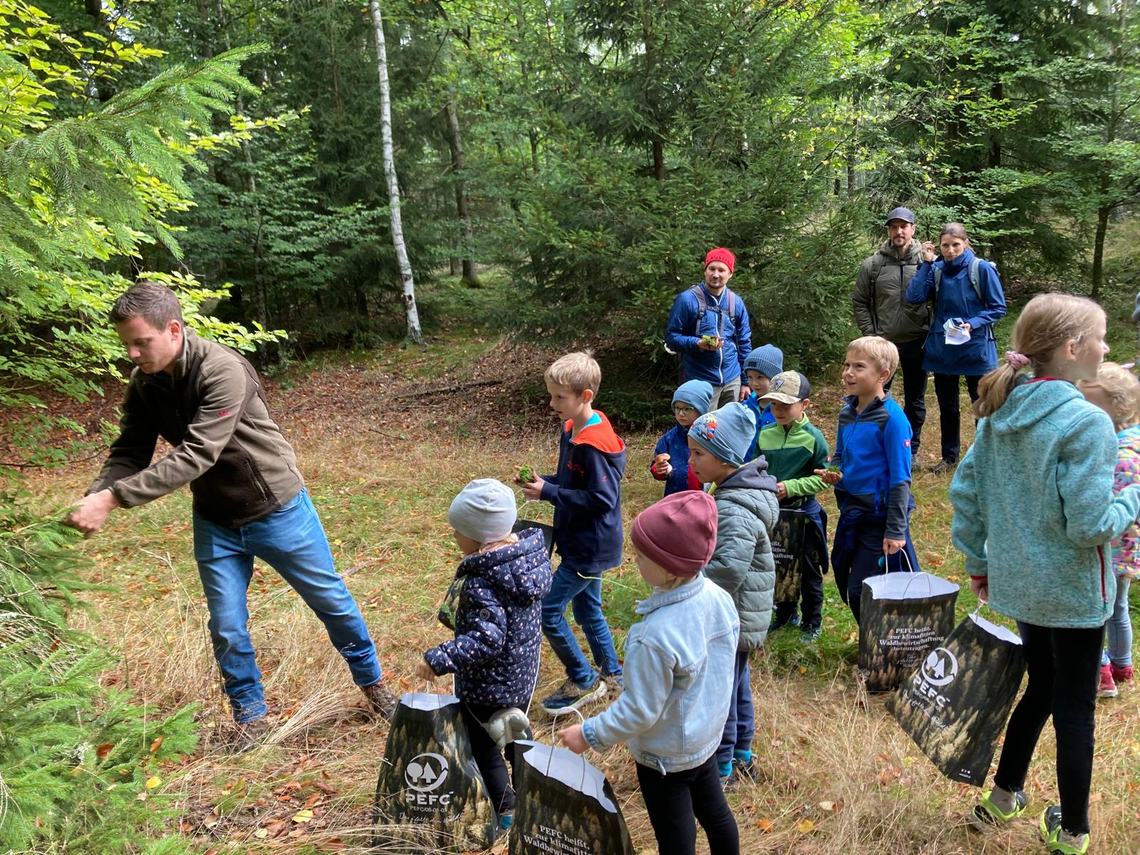 Unter der fachkundigen Leitung von Sebastian Jungbauer erfuhren die Teilnehmenden, warum gesunde Wälder so wichtig für unser Klima sind – heute und für kommende Generationen. Die Wanderung bot eine abwechslungsreiche Mischung aus spannenden Informationen für Erwachsene und spielerischen Aktivitäten für Kinder.